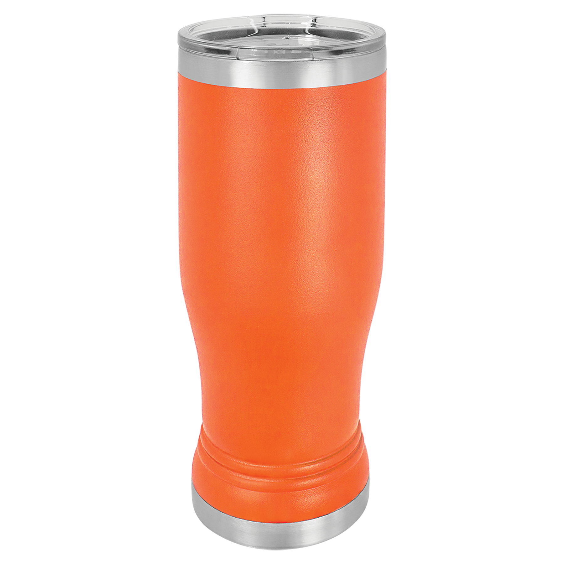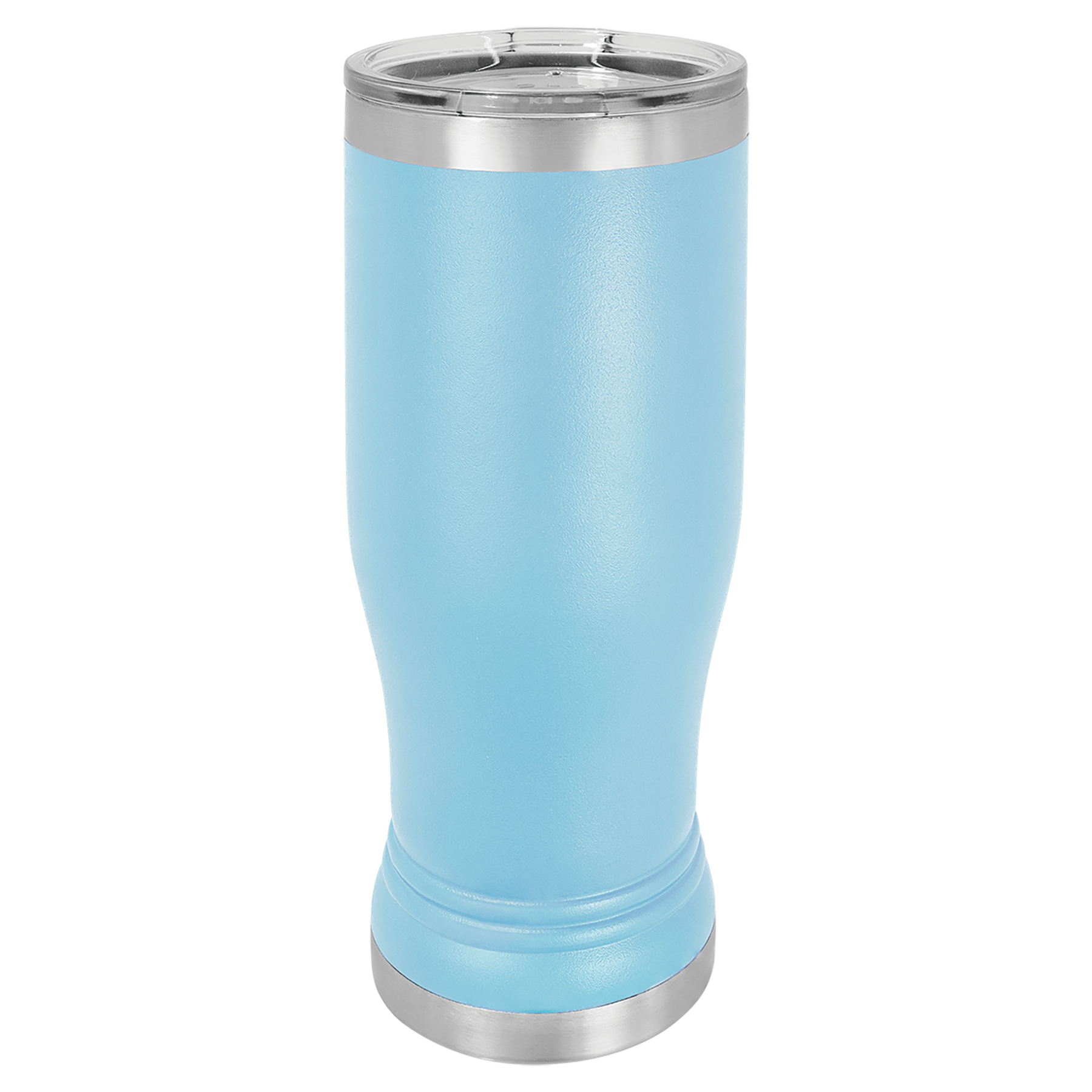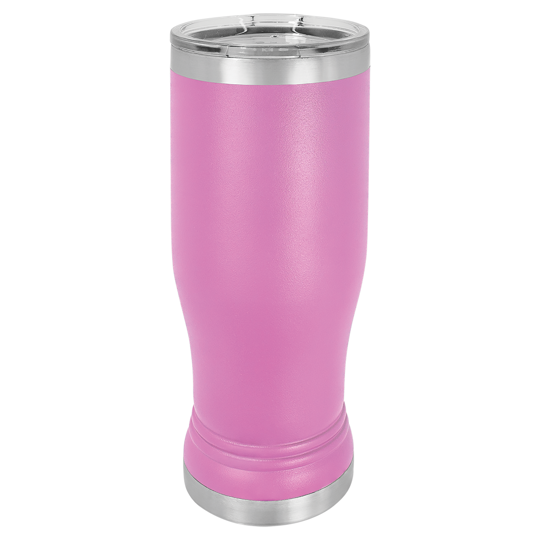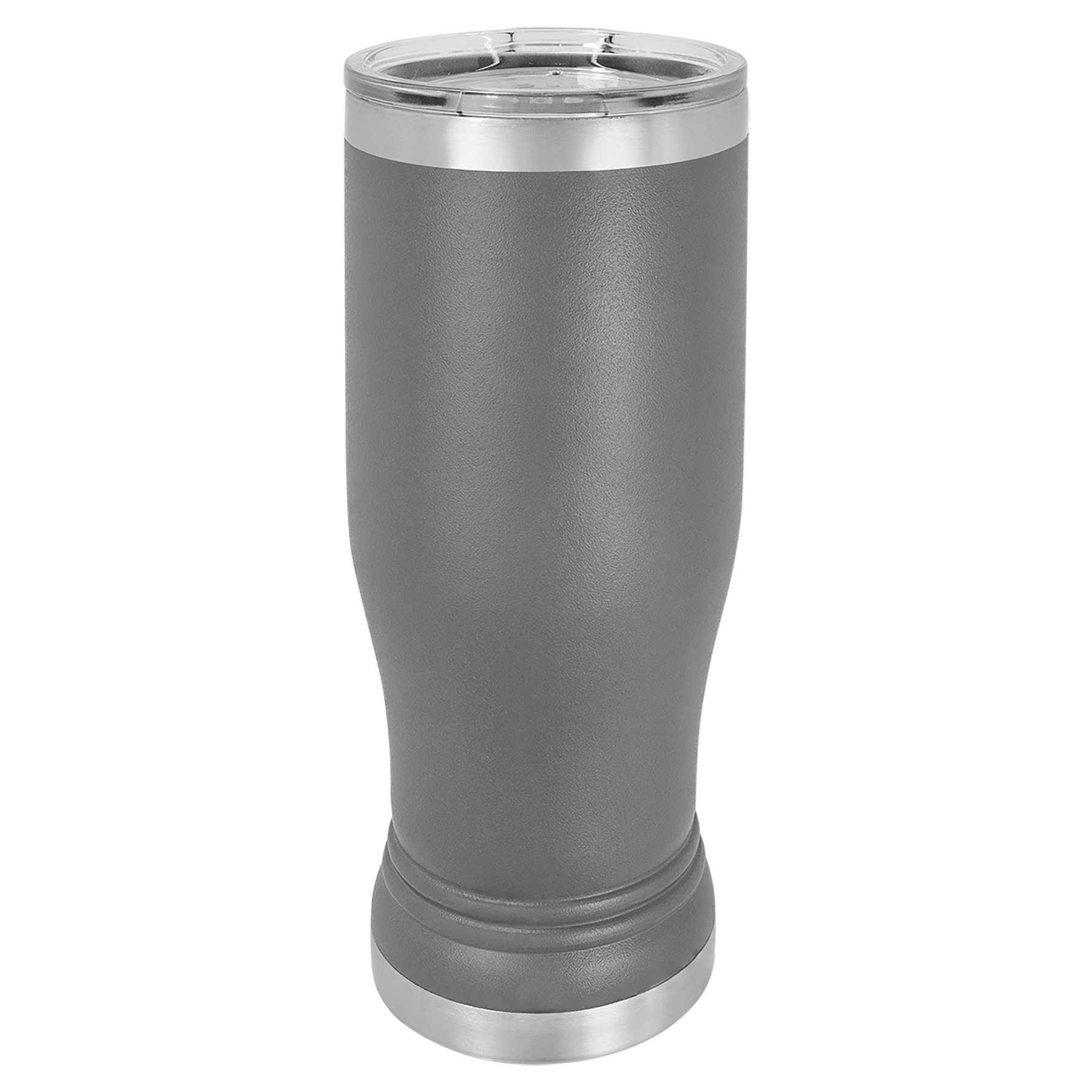 14 oz. Powder coated Stainless Steel pilsner style tumbler feature double-wall, vacuum insulation with a clear lid.