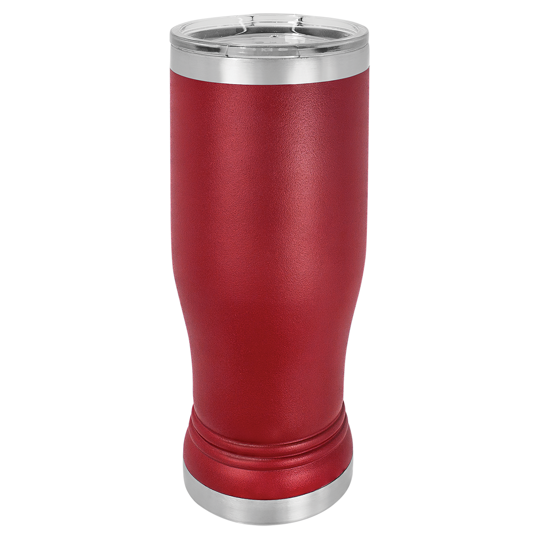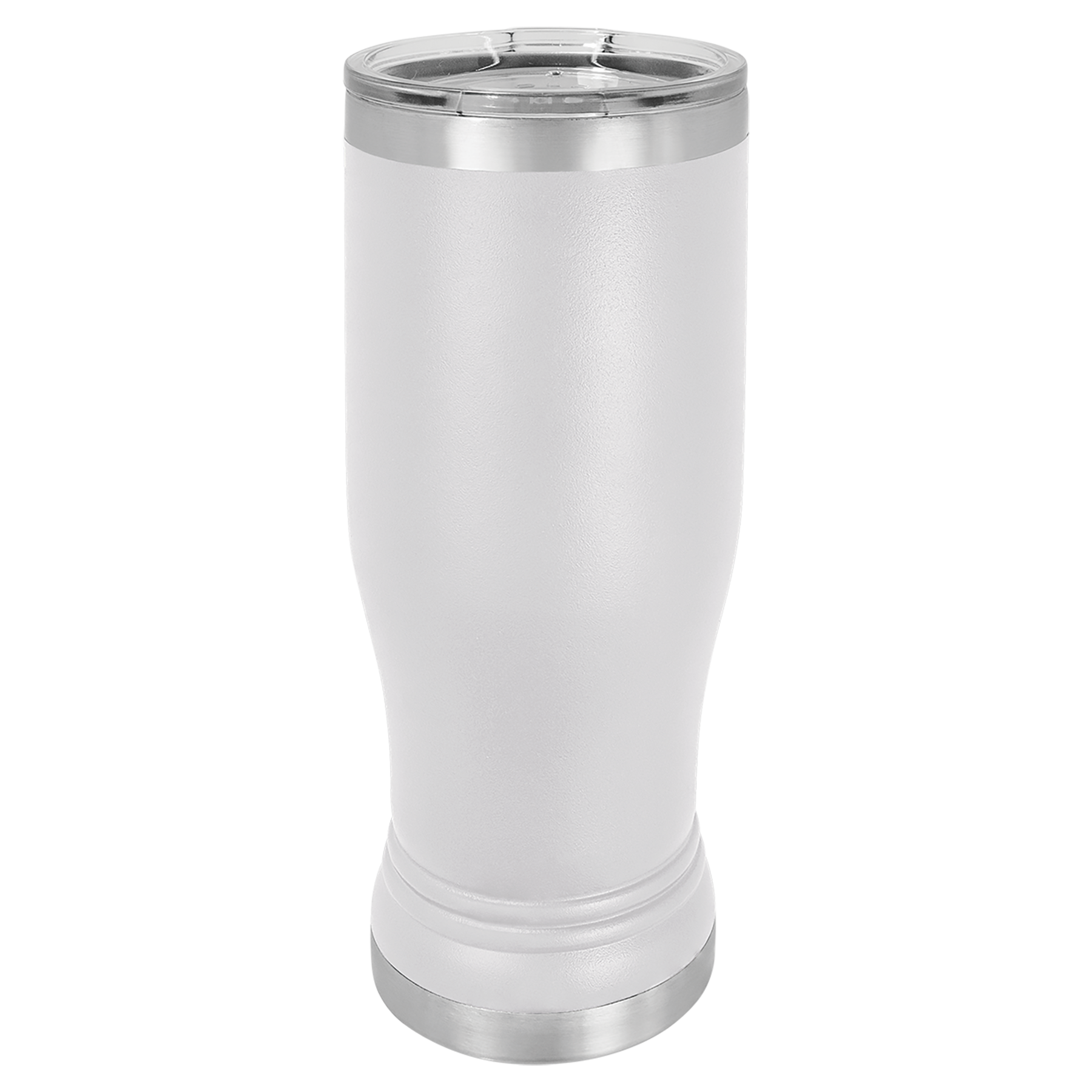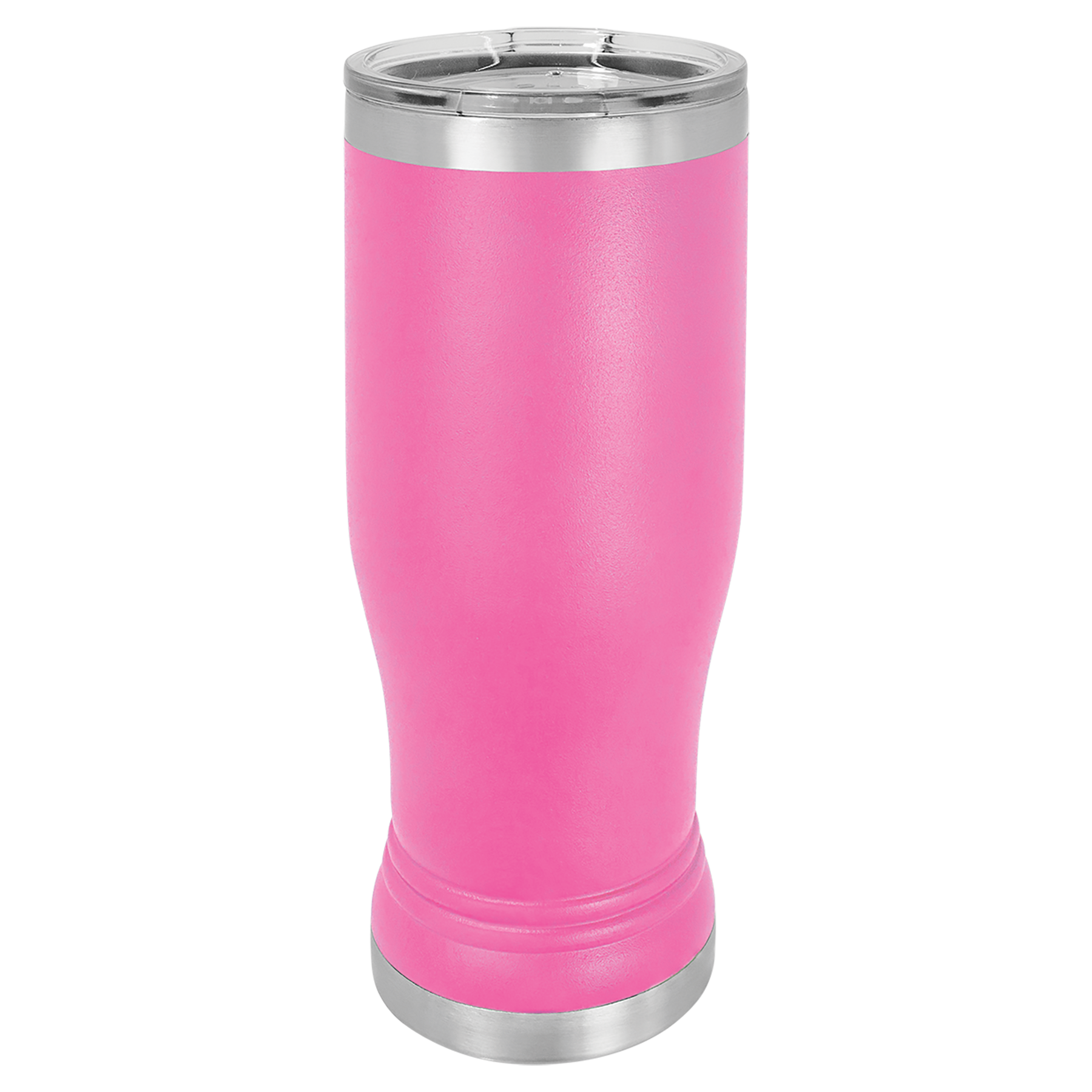 14 oz. Powder coated Stainless Steel pilsner style tumbler feature double-wall, vacuum insulation with a clear lid.
