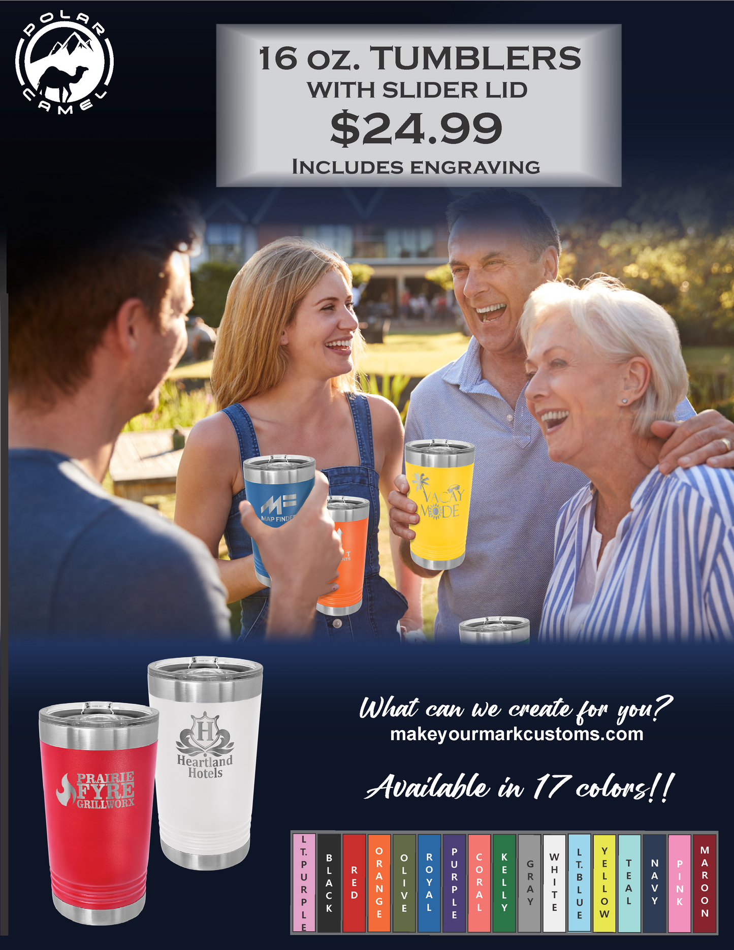 CUSTOMIZABLE 16oz PINT TUMBLERS - SLIDER LID - FITS IN CAR CUP HOLDER!!
