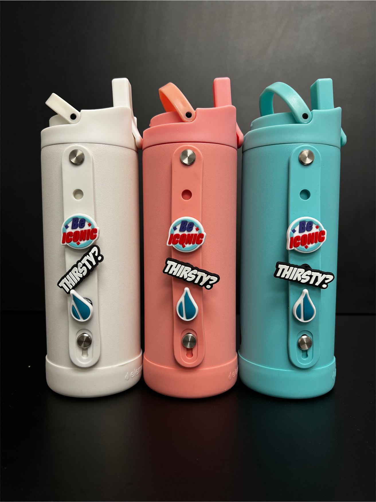 This unique and innovative product features a detachable silicone handle, which comes with 3 charms already included and 2 slots more to allow you to customize your bottle however you choose. Not only does this make the bottle look cool and unique, but it also allows for more practical functions like carrying keys or attaching carabiners for easy transport.