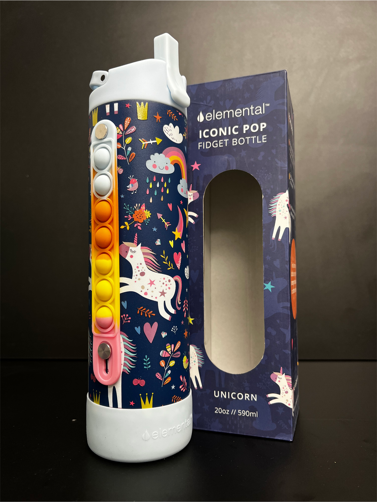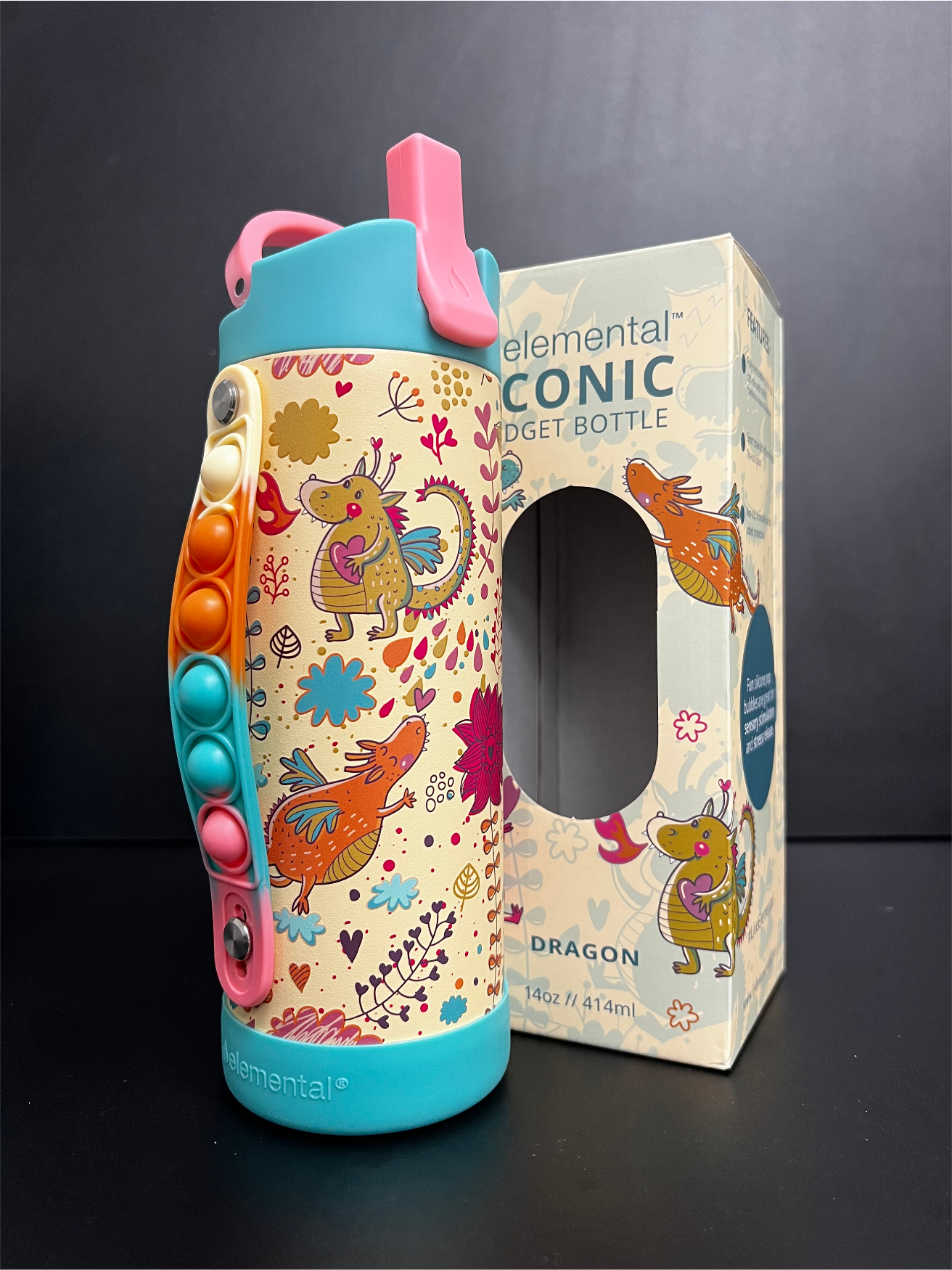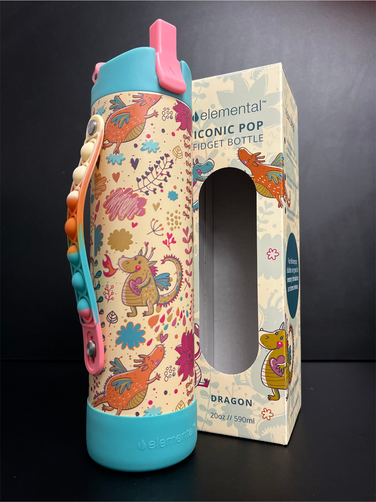 Combining hydration with playfulness with its fun pop strap, this bottle encourages kids to drink more water while serving as an interactive toy.